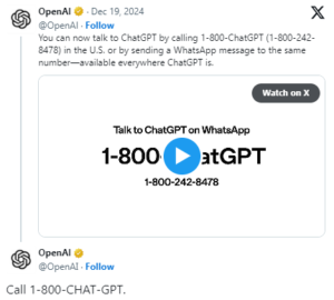 chatgpt-is-now-on-whatsapp by mebeing December 25, 2024, 1:39 am 9 Views See more Previous article ChatGPT is now on WhatsApp; Here’s how to message the AI chatbot for free Written by mebeing Comments Our site Disqus Leave a Reply Cancel replyYou must be logged in to post a comment. Loading…
