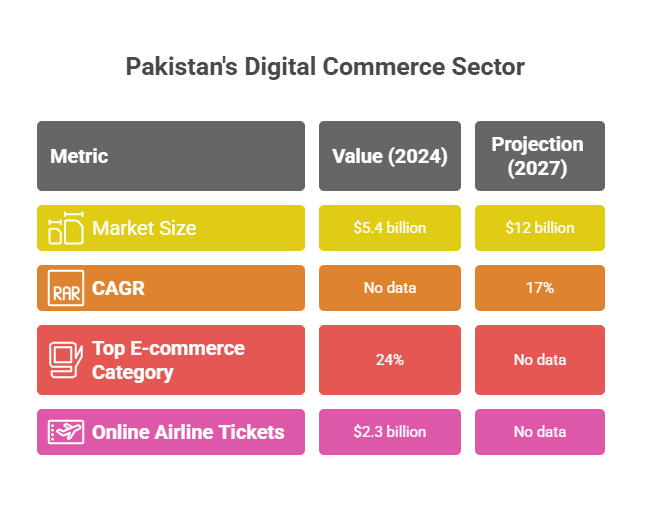 The Asian Development Bank’s findings reveal an impressive growth trajectory for Pakistan’s digital commerce sector. With a projected compound annual growth rate (CAGR) of 17%, the market is expected to reach $12 billion by 2027. This growth significantly outpaces many regional economies and positions Pakistan as one of the fastest-growing e-commerce markets in South Asia.