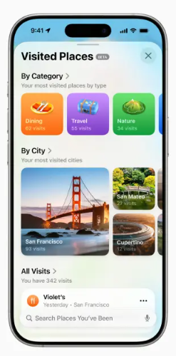 Apple Maps will use on-device AI to learn your commute routes and offer real-time traffic updates or alternate directions. A new Visited Places feature lets your iPhone track locations you’ve been to—like restaurants or shops. Apple says all this data is private and end-to-end encrypted.